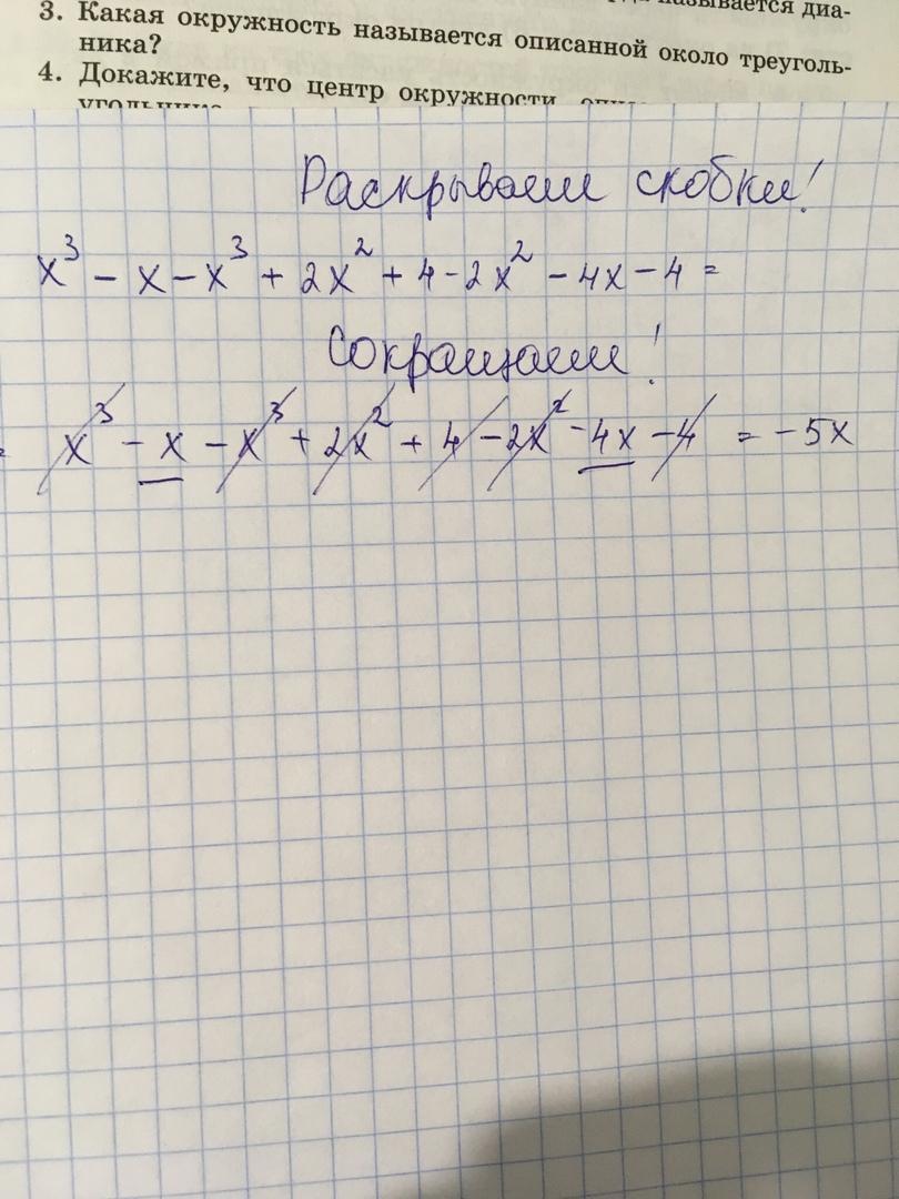 На фото написано сразу решение, сначала раскрываем скобки, потом сокращаем, то есть взаимноуничтожаем и приводим подобные слагаемые