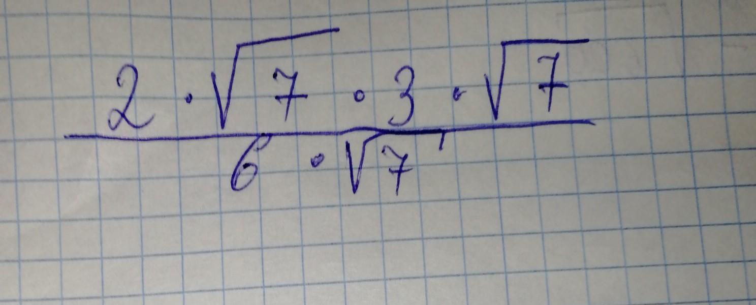 7 кореней из 7(сначало умножаем корень из 7 на корень из семи = будет 7. Потом избавляемся от иррациональности снизу, там будет корень из семи, а снизк будет только 6