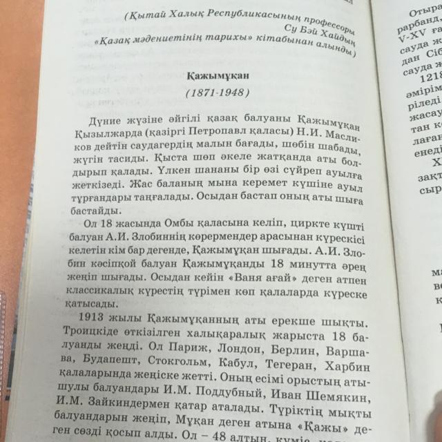 Всемирно известный казахстанский борец Кажымукан Петропавловск Н. И. Купец сказал Масликов скот цены, несет бремя травы рыбы. Причинение имя чего сено на зиму. Будет перетащить тело в деревню. Маленькие дети поражаюсь этой невероятной силой сельского населения. С тех пор начинается с его именем.