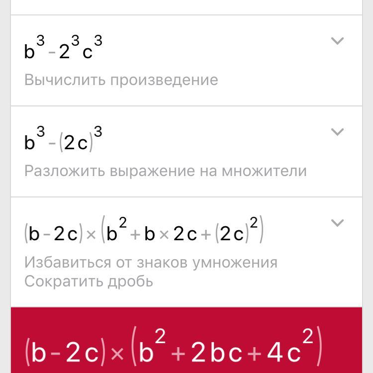 b^3 - (2c)^3 = (b-2c)*(b^2+2bc+4c^2)