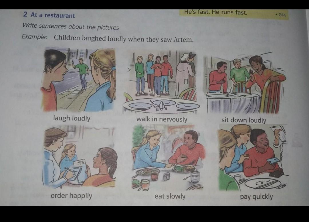 Childrens laugh loudly when they saw Artem and they went to cafe. When they sit on the chair they talked very loudly. They had ordered stake with mashed potatoes. Waiters was very happily. Our order had brought, but we ate it very slowly. Quickly paid off, we went home.