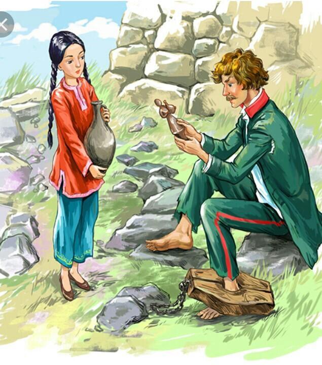Разная одежда,разные вещи в руках,девочка в обуви мужчина нет,мужчина прикован девочка нет, девочка молодая-мужчина взрослый!