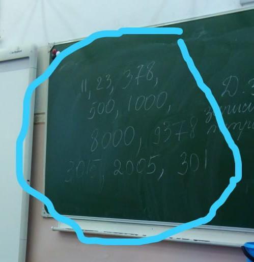 Одиннадцать, двадцать три, триста семьдесят восемь, пятьсот, одна тысяча, восемь тысяч, девять тысяч триста семьдесят восемь, три тысячи пятнадцать, две тысячи пять, триста один.