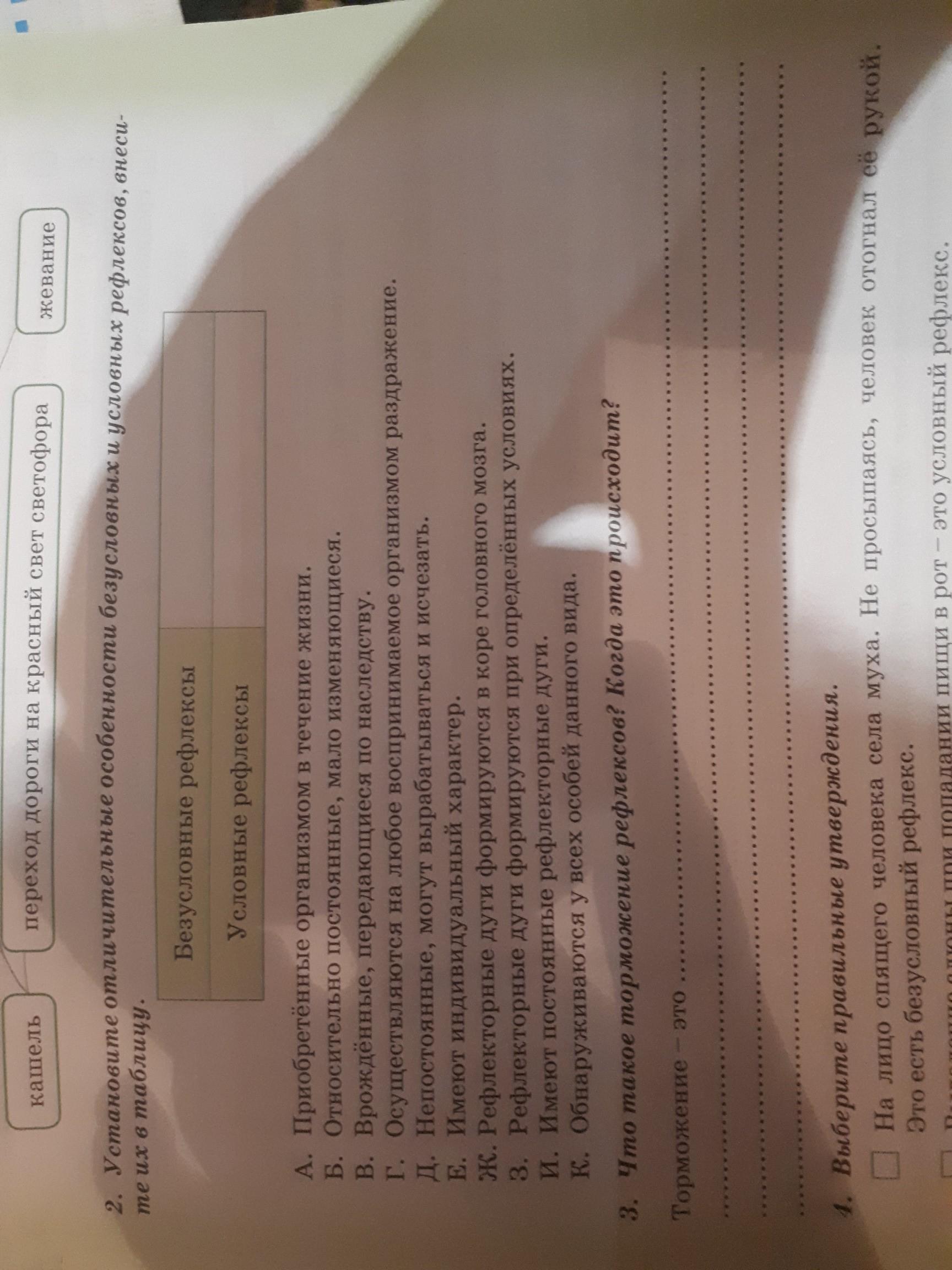 Установите отлтчительные особенности безусловных и условных рефлексов, внести их в таблицу