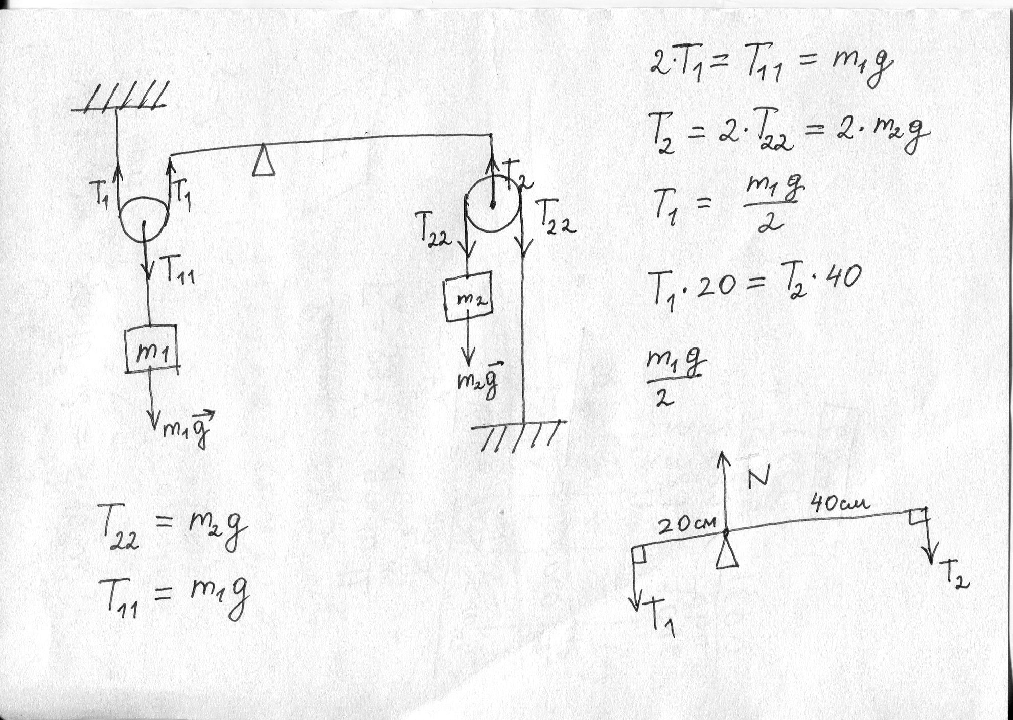M₁*a₁ = T₂ - T₂₂ - T₂₂, где Т₂₂ - сила натяжения нижней нити.
