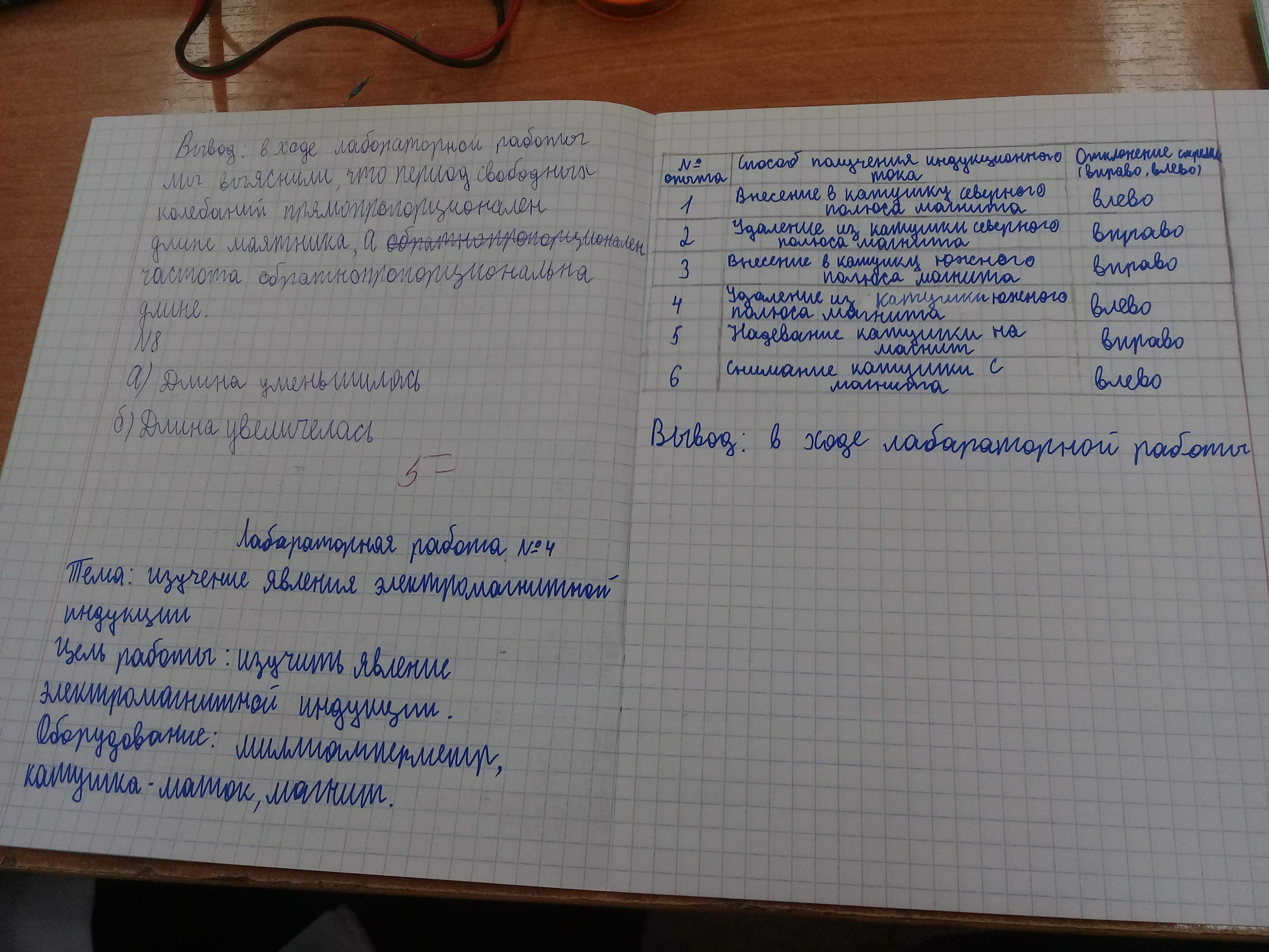 Вывод: в даном опыте отклонение стрелки милиамперметра показывает направление индукционного тока, при воздествии магнита, в зависимости от направления витков в катушке.