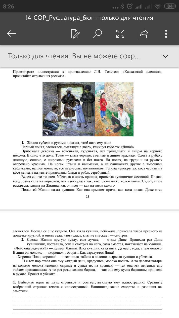 1. Выберите один из двух отрывков и соответствующую ему иллюстрацию. Сравните выбранный отрывок текста с иллюстрацией. Напишите, какие сходства и различия вы заметили,
