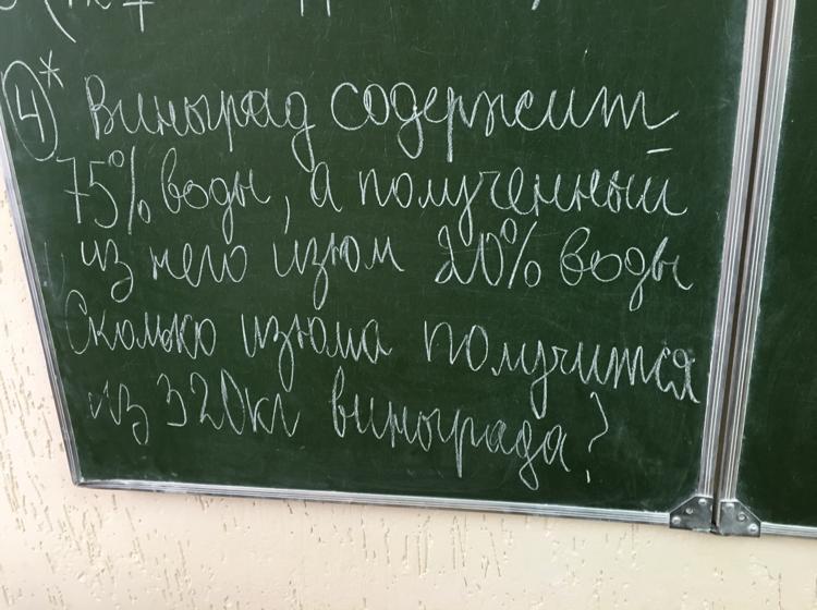 1. 320:4=80 кг сухой массы в 320 кг свежего винограда. вся она остается в изюме и составляет 80 процентов его.