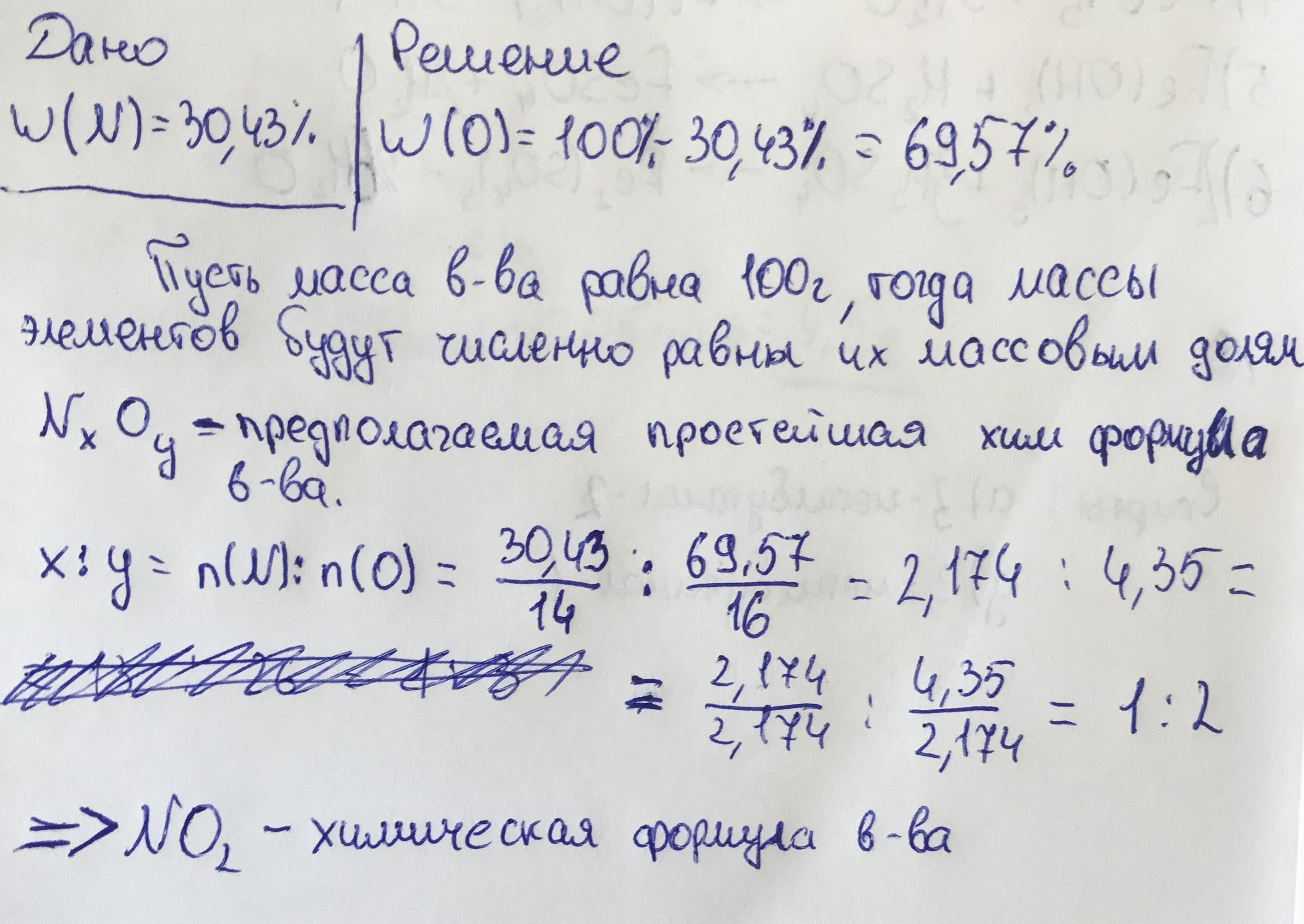 Определить молекулярную формулу вещества в состав которого входят:азот - 30,43% ,остальное кислород.