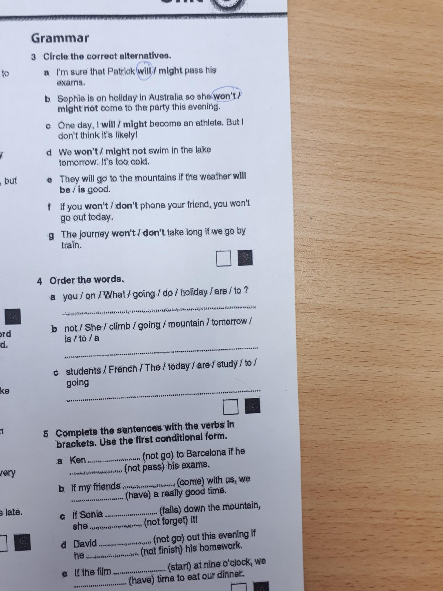 5. Ken won't go to Barcelona, if he doesn't pass his exams