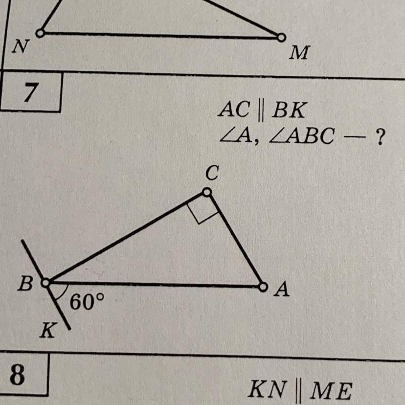 ВС перпендикулярно ВК, следовательно угол СВК 90. А потом 90-60=30