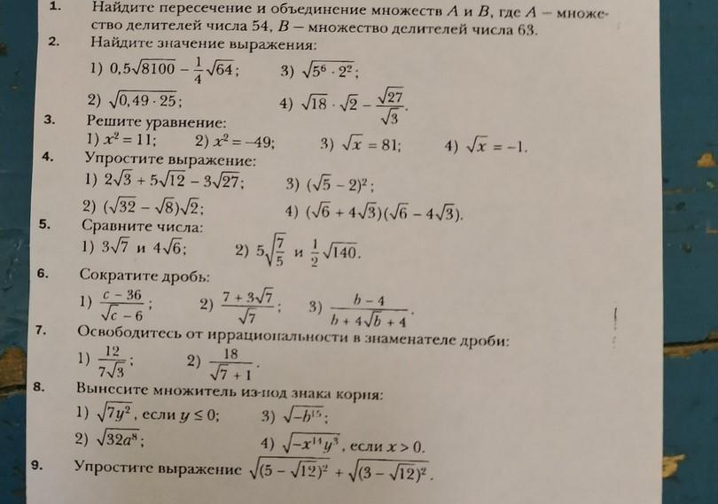 объединение А и В: 1,2,3,6,7,9,18,21,27,54,63