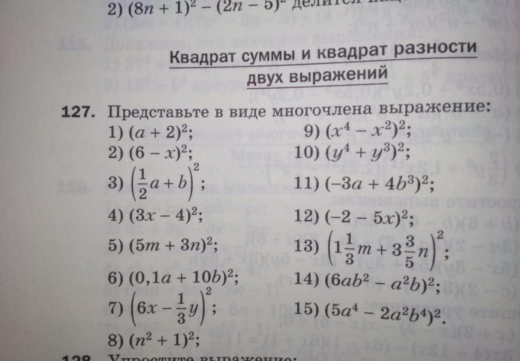 Это очень просто там нужно было к примеру (а-b) в квадрате=а квадрат-2ab+bквадрат.Вот и всё. Это очень просто