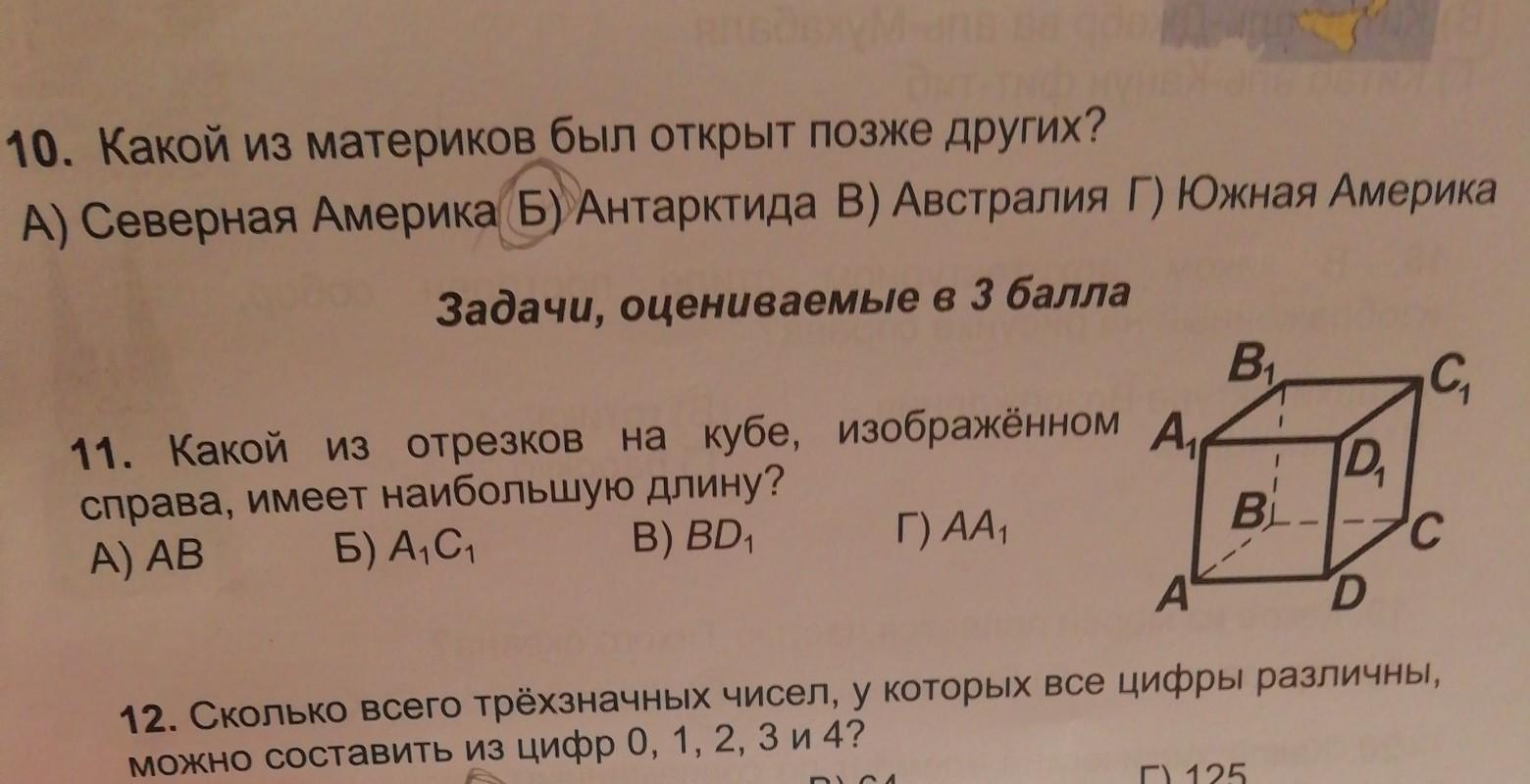 Если ребро Куба а, то диагональ грани а|/2, диагональ Куба а|/3. Ответ ВД1, так как это диагональ куба