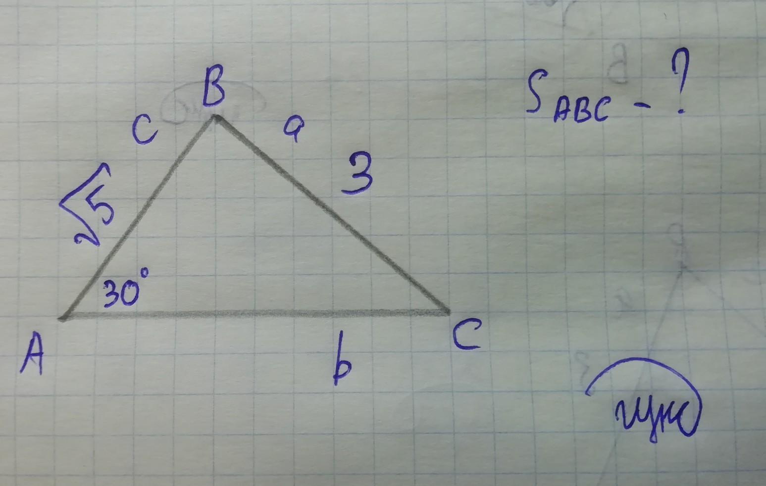 Площадь треугольника равна половине произведения двух его сторон на синус угла между ними