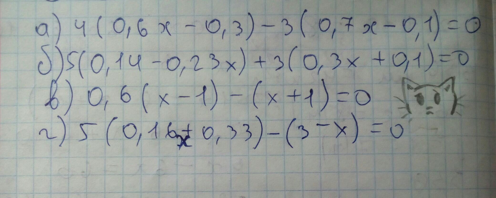 4(0,6x-0,3)-3(0,7x-0,1)=0