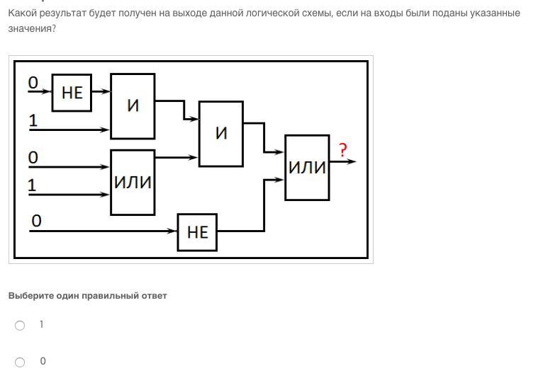 Какой результат будет получен на выходе данной логической схемы, если на входы были поданы указанные значения?