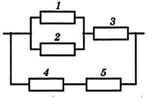 Придумать и зарисовать сложное соединение проводников, включающее не более пяти резисторов. Отметить сопротивление каждого резистора (например: 4 Ом, 5 Ом, 3 Ом и т. п.). Рассчитать общее сопротивление цепи.