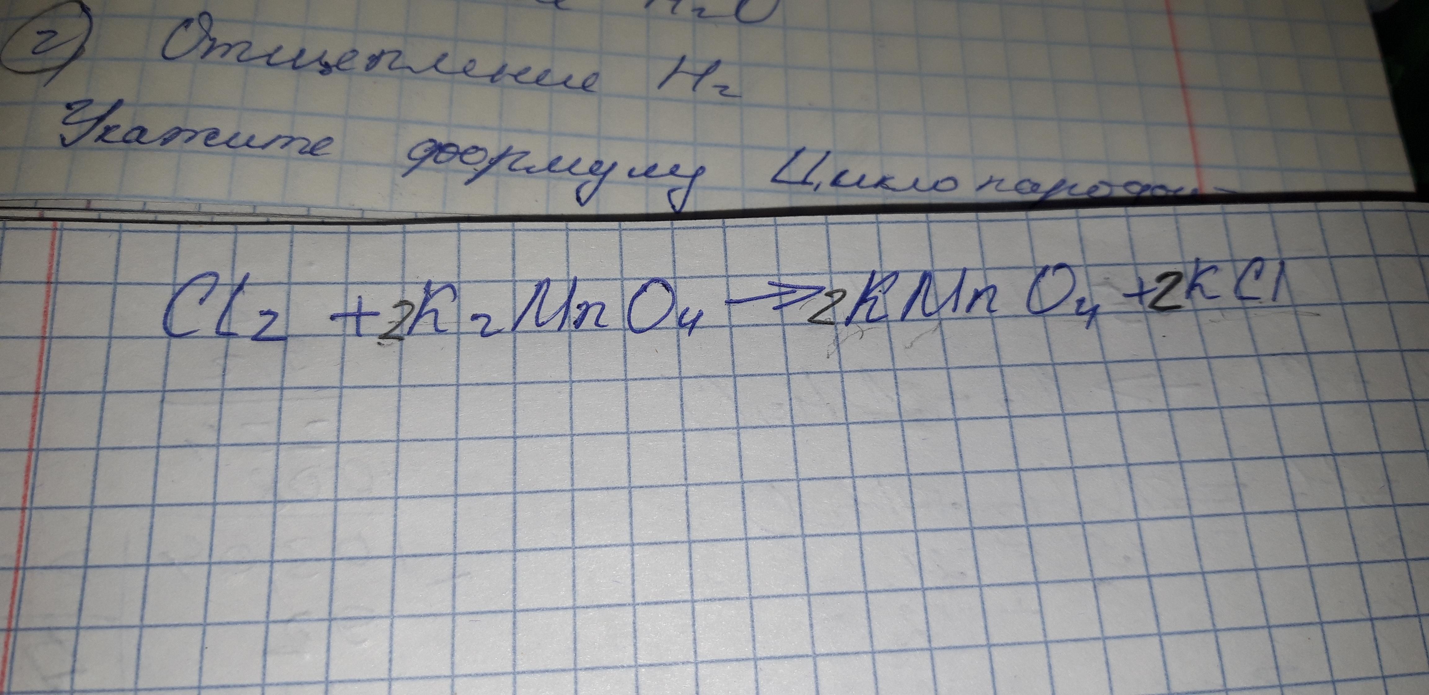 Cl2(Стрелочка вверх)+K2MnO4 ----> KMnO4+KCI