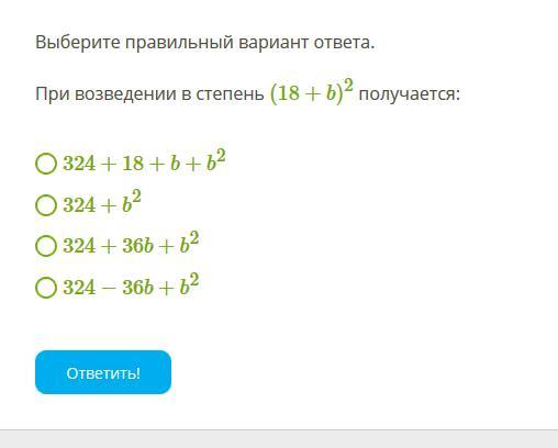 каждый член в скобке возведи в квадрат . это 18×18=324 , ответ:324+b2