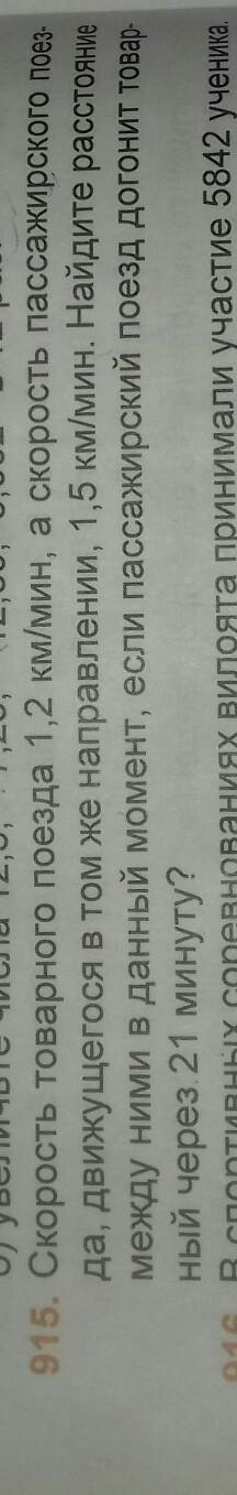1)1,5-1.2=0,3 км/мин скорость сближения поездов