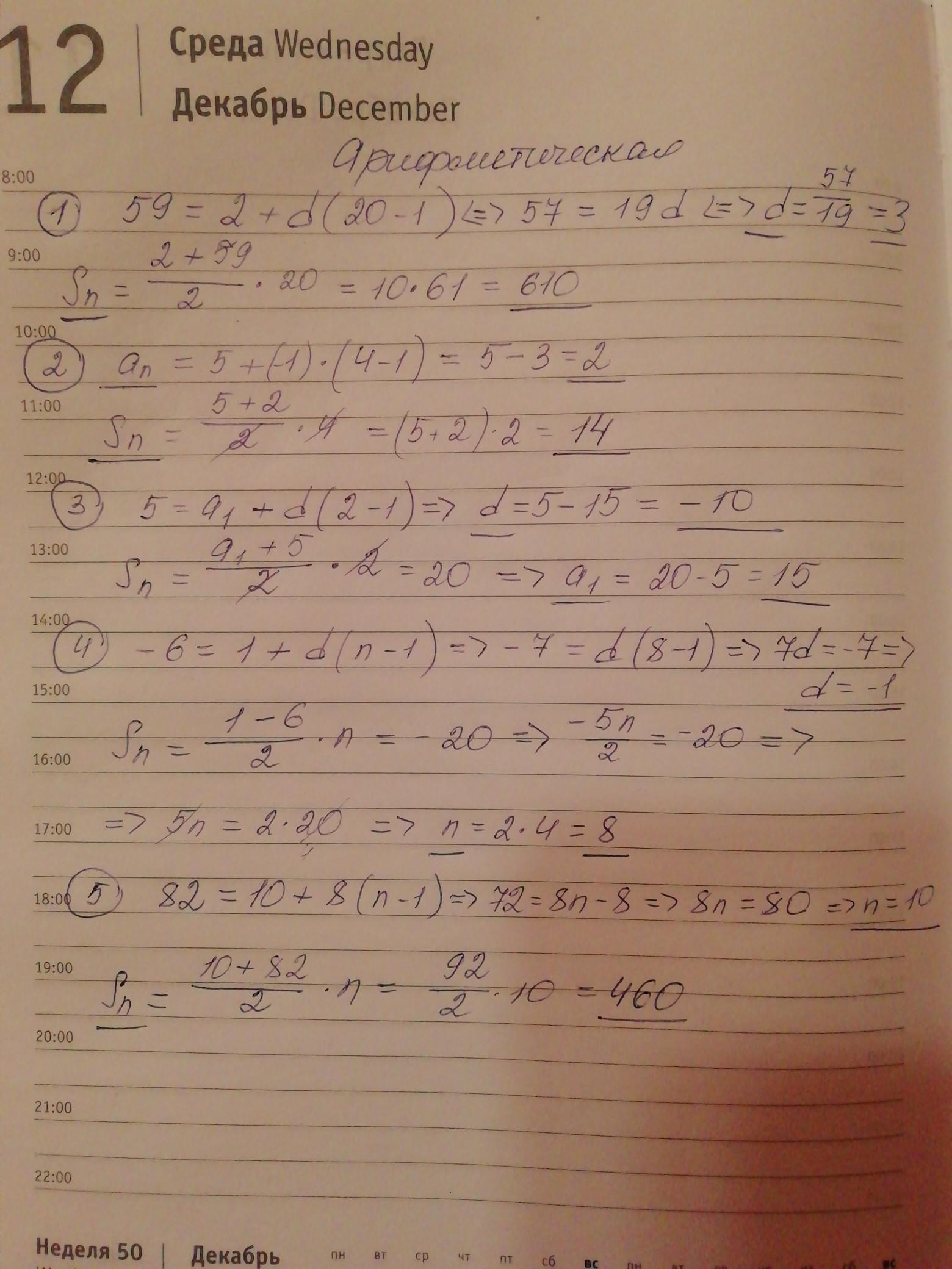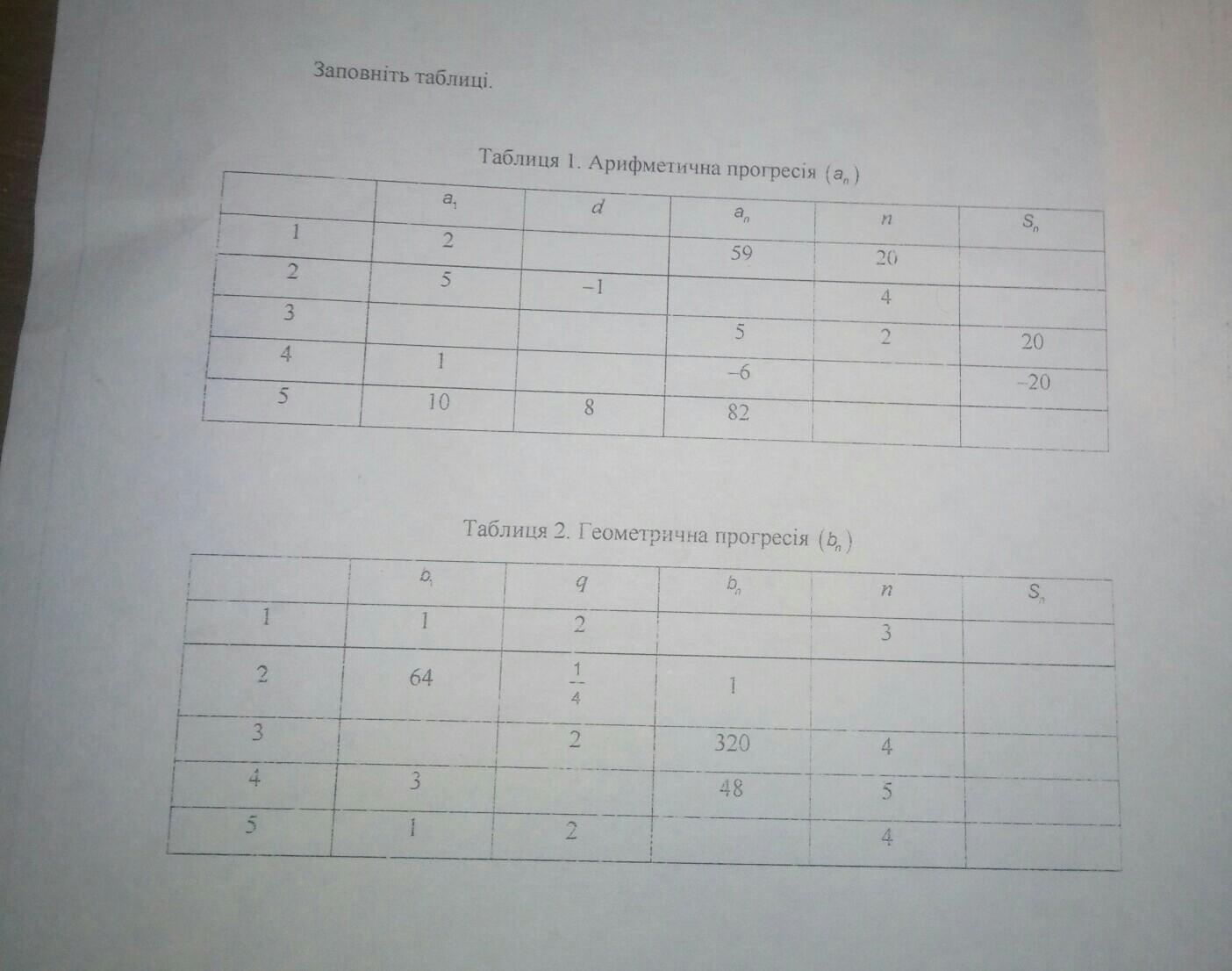 для геометрической предлагаю сделать хозяину задания - там нужно просто в формулу подставить цифры!
