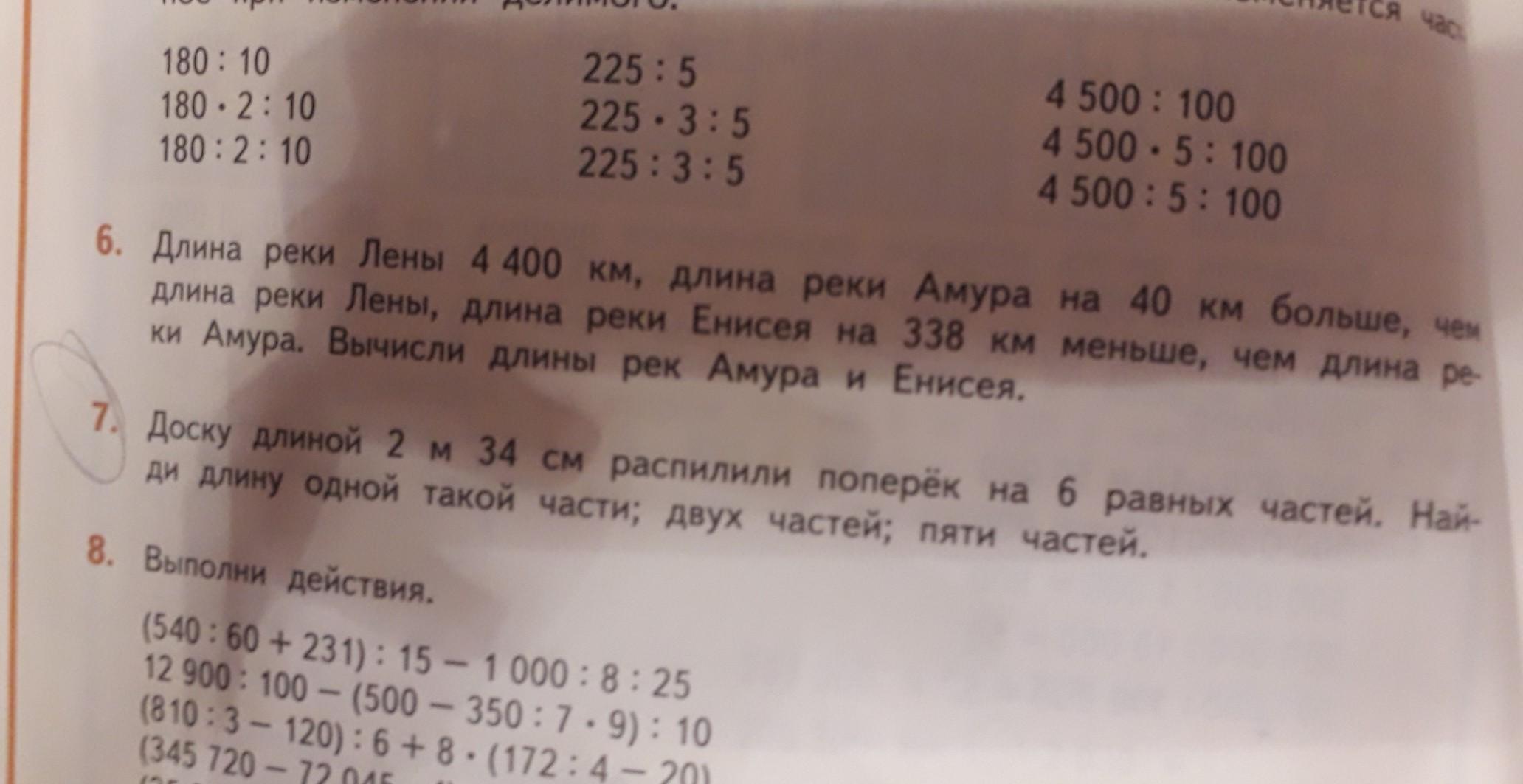 Т.к. доску распилили пополам на 6 равных частей, то 1 часть равна частному длины доски и количеству каждой полученной равной части, т.е. 234/6 = 39 (см)