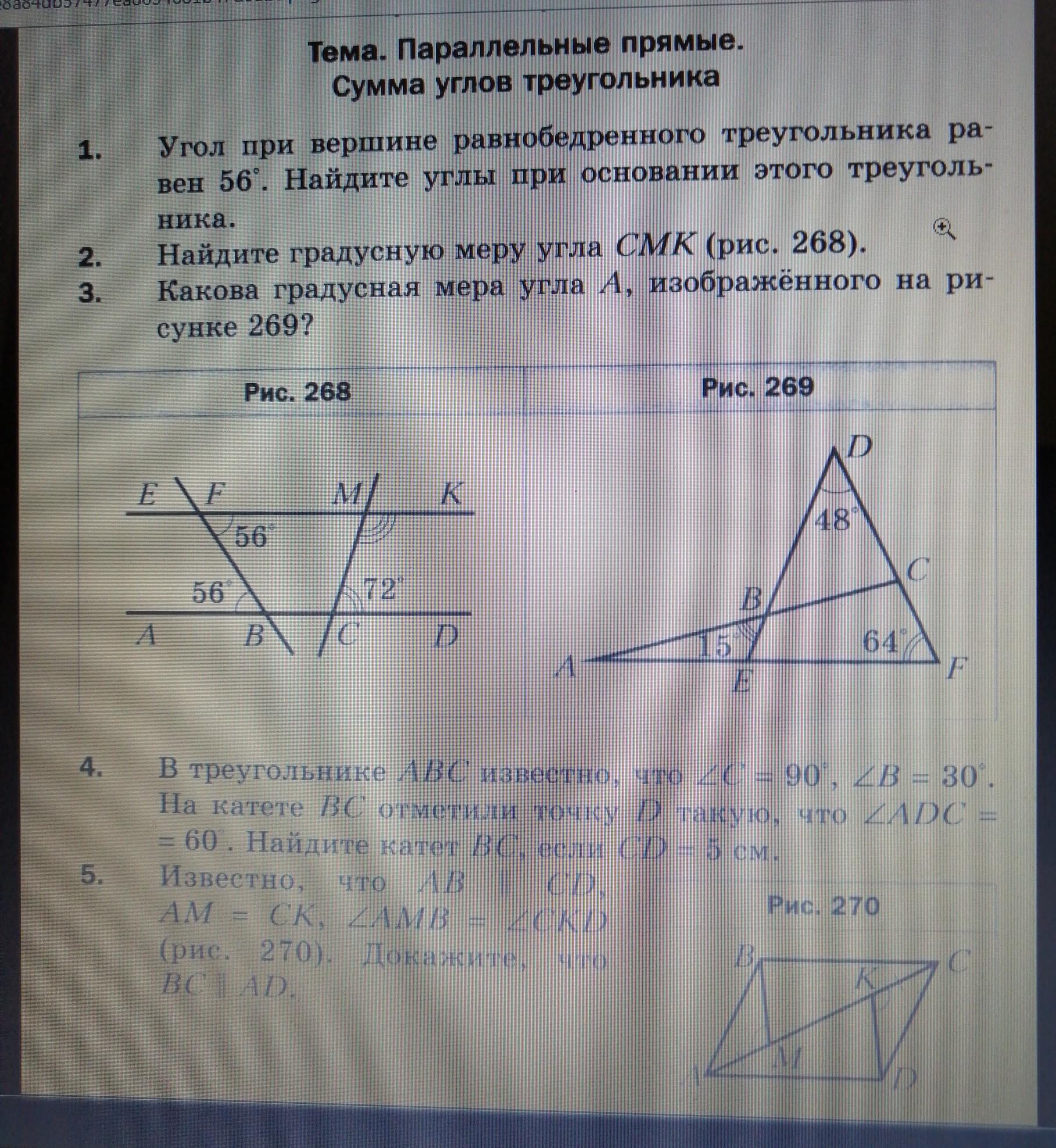 углы СМК и МСD одностороние, если прямые параллельны и пресечены секущей, то сумма односторонних углов равна 180°