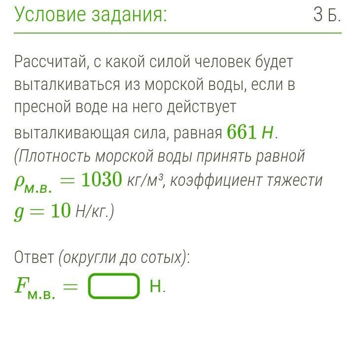 F=Fм в=p/pм в Fм в=F*pм в/p=661*1030/1000=680,83 H