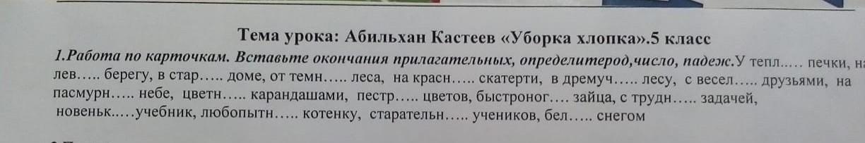 У тёплой печки (Рп), на левом берегу (Пп), в старом доме (Пп), от тёмного леса (Рп), на красной скатерти (Пп), в дремучем лесу (Пп), с весёлыми друзьями (Тп), на пасмурном небе (Пп), цветными карандашами (Тп), пёстрых цветов (Рп), быстроногого зайца (Рп), с трудной задачей (Тп), новенький учебник (Ип), любопытному котёнку (Дп), старательных учеников (Рп), белым снегом (Тп).
