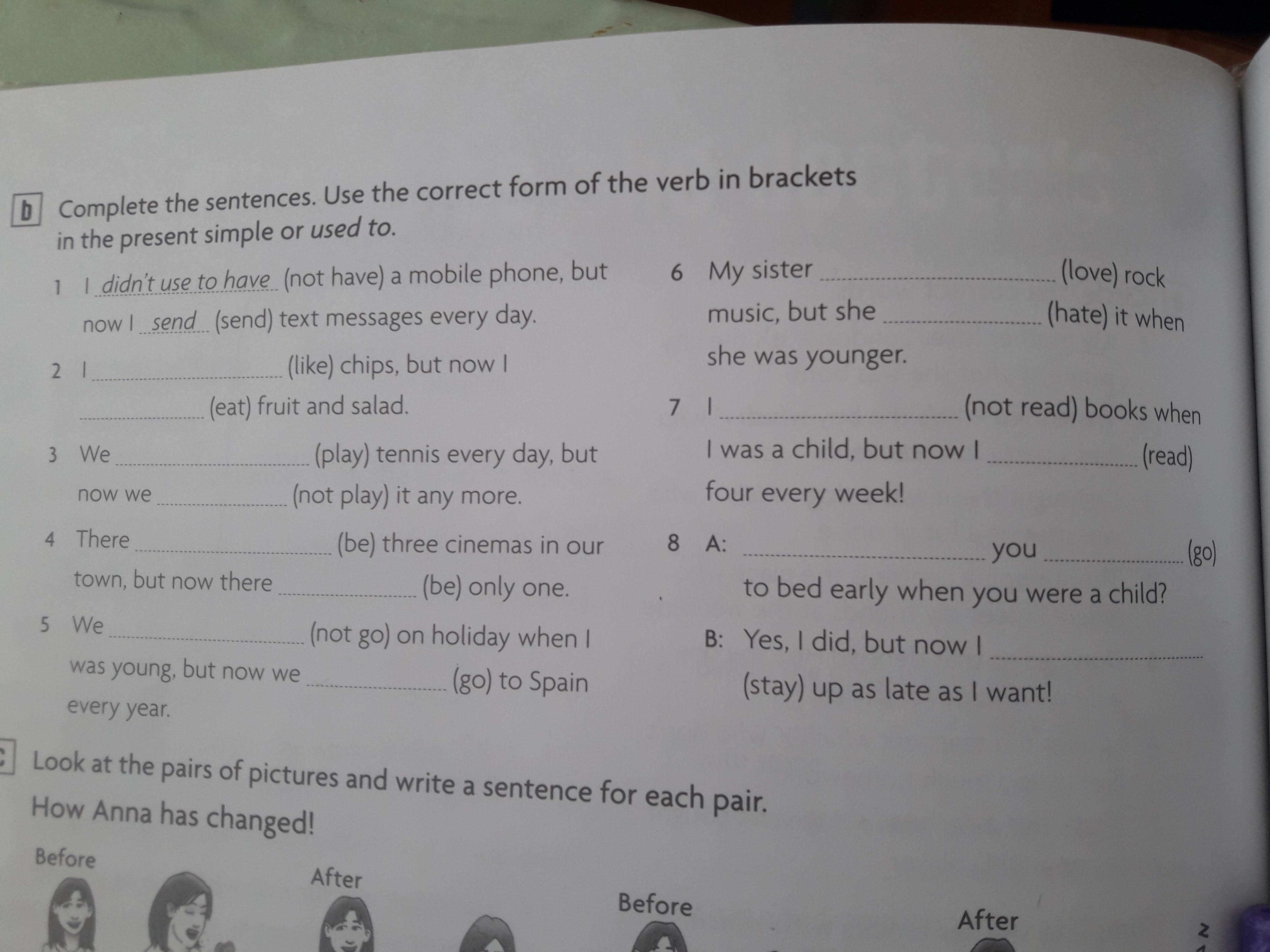 Complete the sentences. Use the correct form of the verb in brackets in the present simple or used to