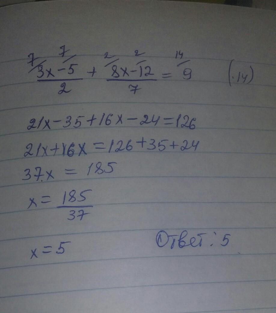 здесь нужно найти общий множитель на 2 и 7.А потом нужно х в одну сторону,а числа в одну сторону.