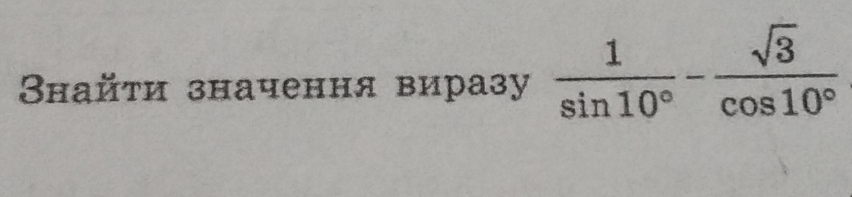 frac{1}{sin10^o}-frac{ sqrt{3} }{cos10^o}=