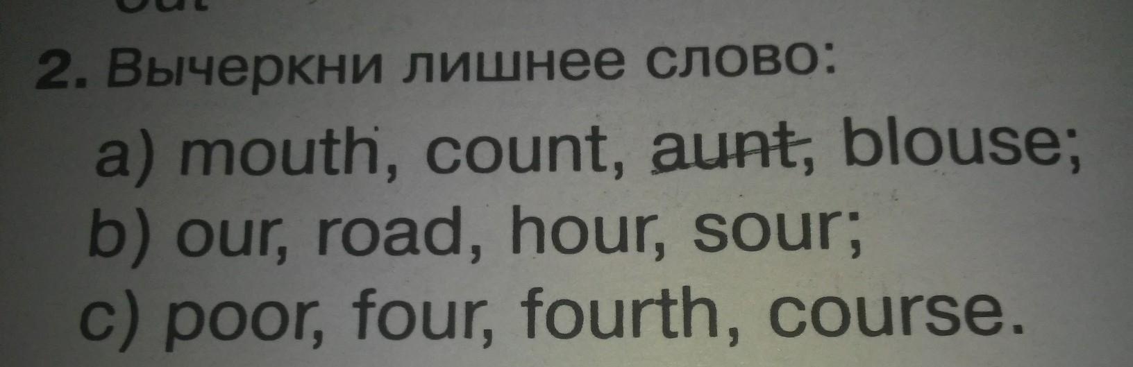 Лишнее слово, которое не соответствует другим по гласному звуку.