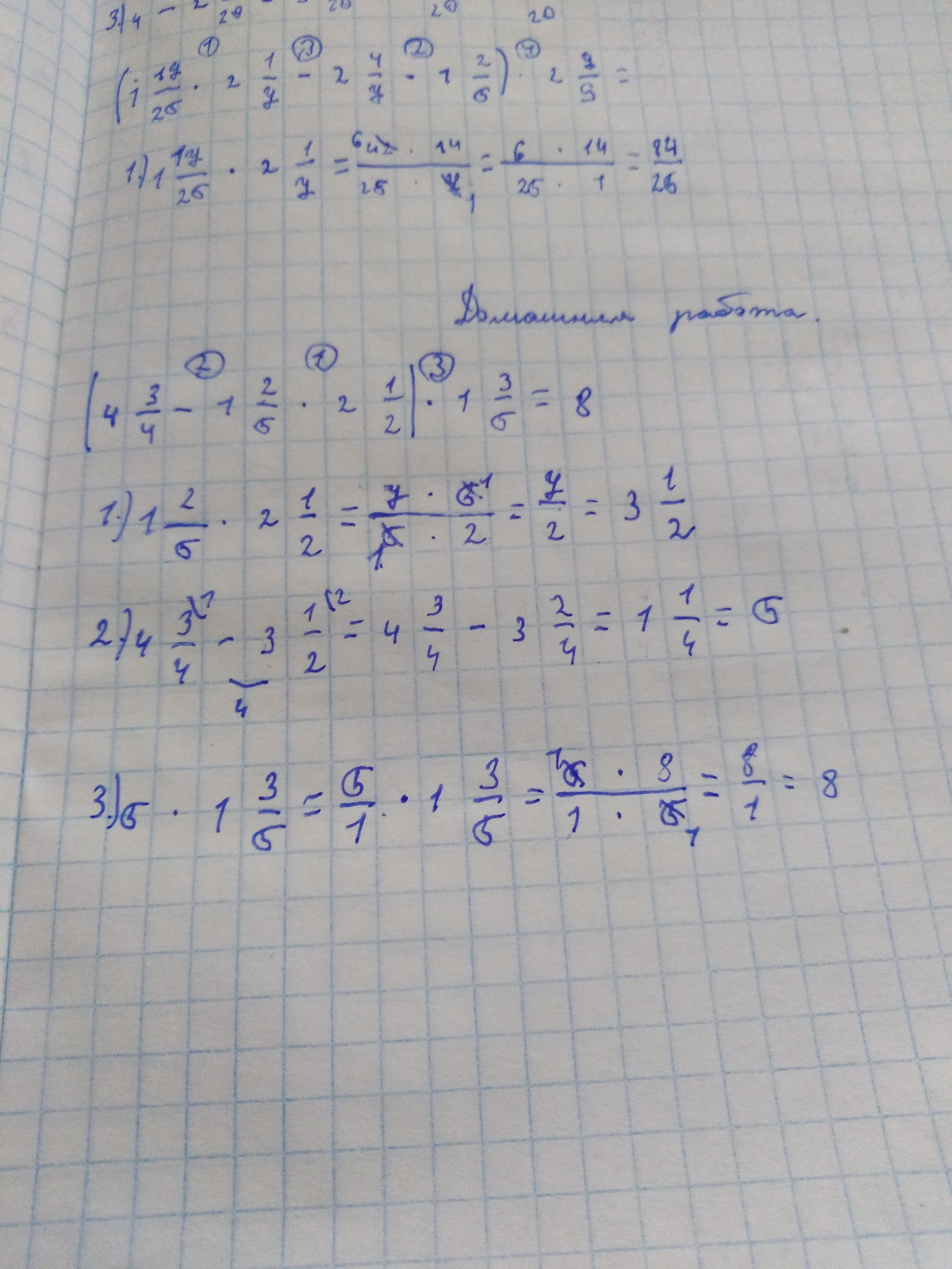 3) 1 1/4*1 3/5=5/4*8/5=2