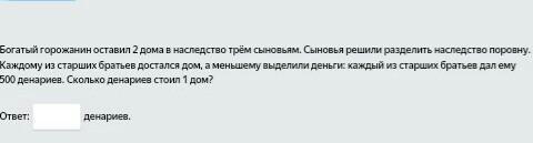 так как все братья получили наследство поровну, значит 1 дом стоил 1000 денариев