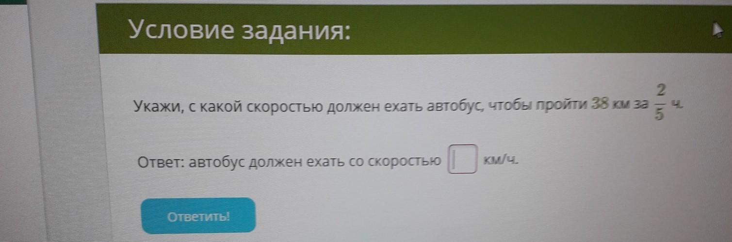 38 : 2/5 = 38*5:2=95 км/ч - должна быть скорость ))))))))))))))))))))))))