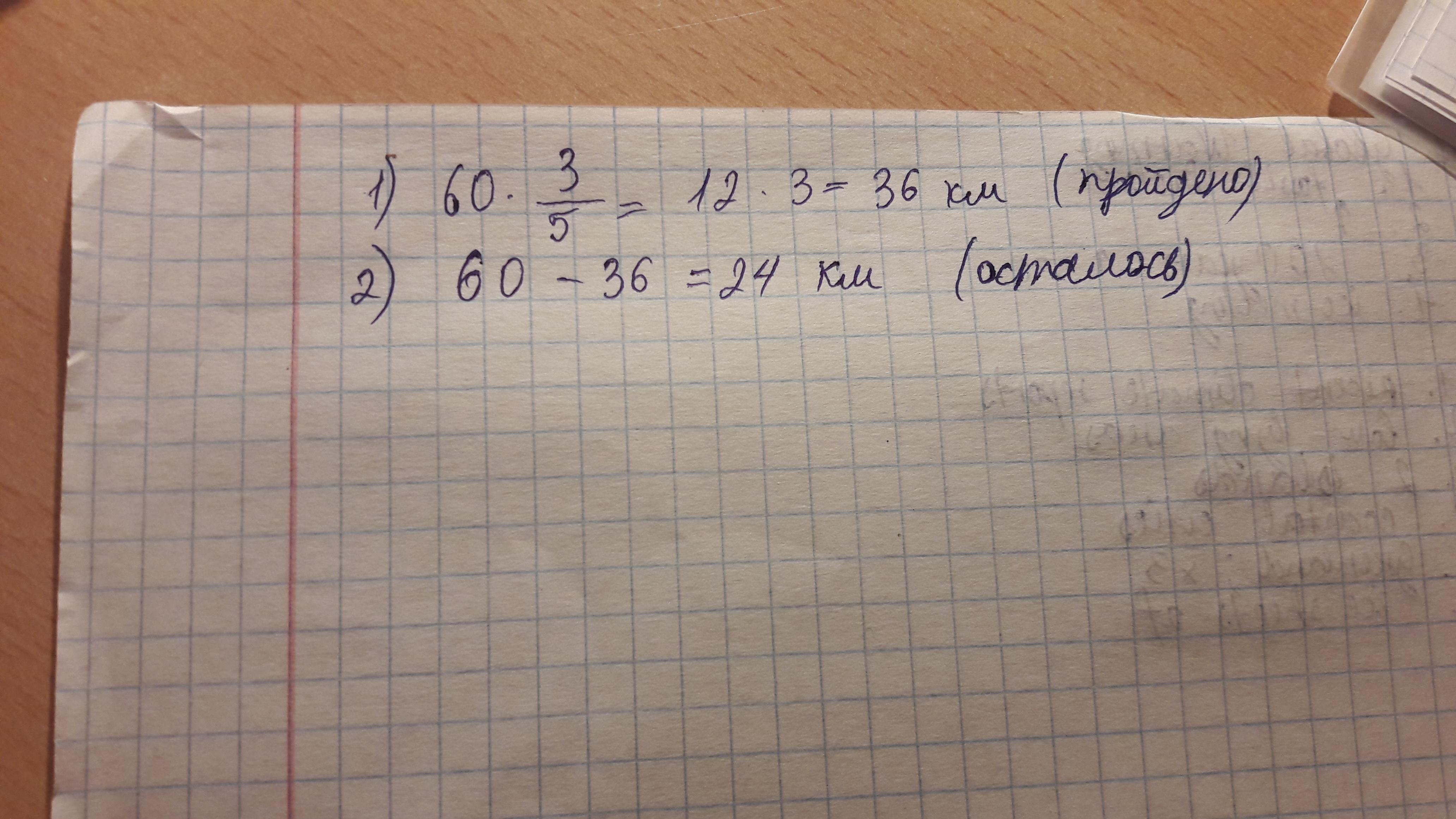 Правильнее: 1) 1 - 3/5 = 2/5, 2) 60 * 2/5 = 24 км - ответ.
