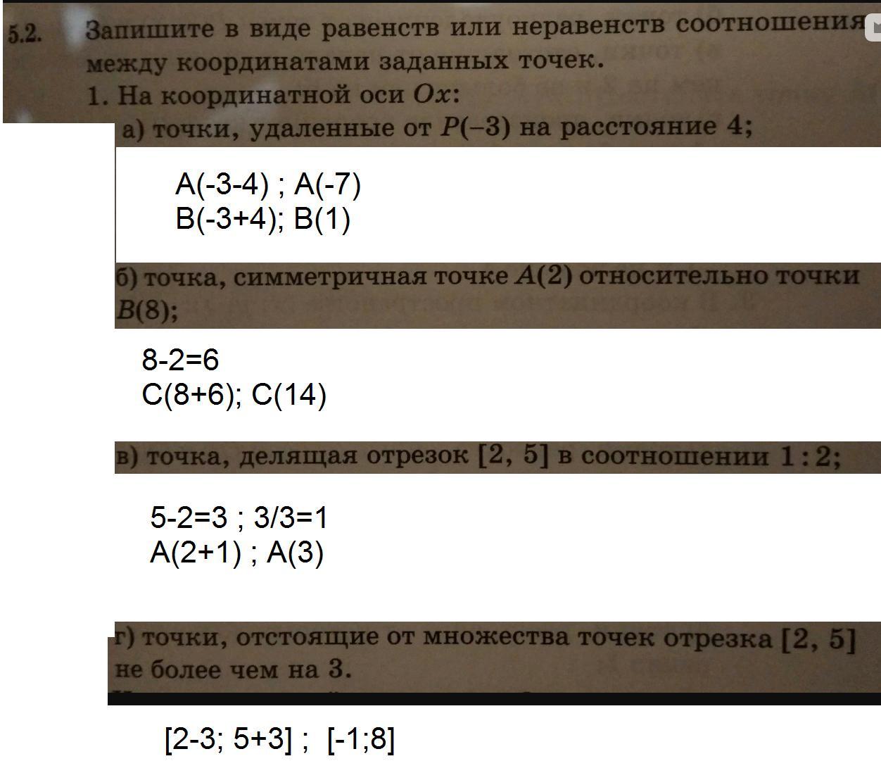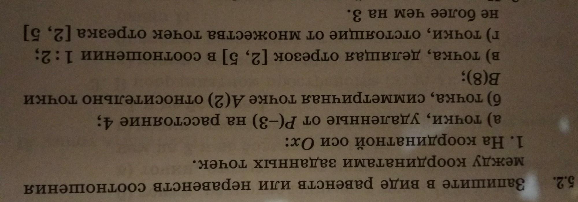 запишите в виде равенства или неравенства отношение между координатами заданных точек.