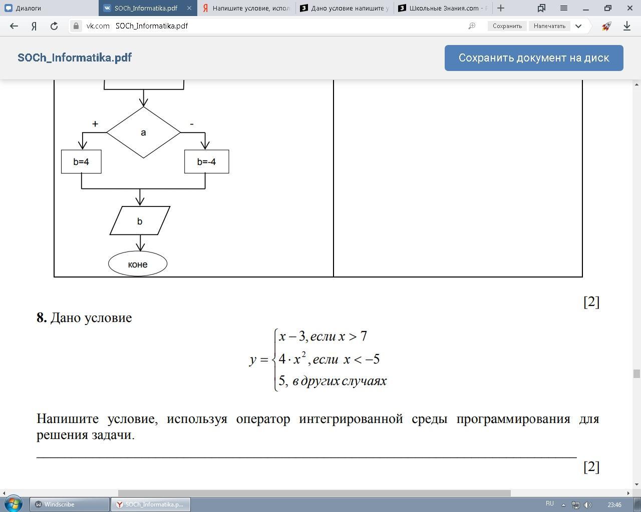 8. Дано условие, Напишите условие, используя оператор интегрированной среды программирования для