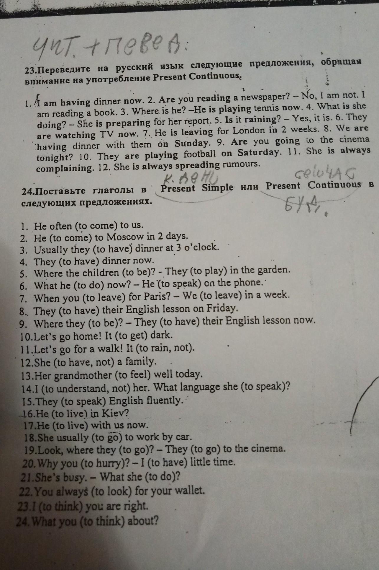 я ужинаю. ты читаешь новую газету?- нет. я читаю книгу . где он? он играет в теннис.что она делает?