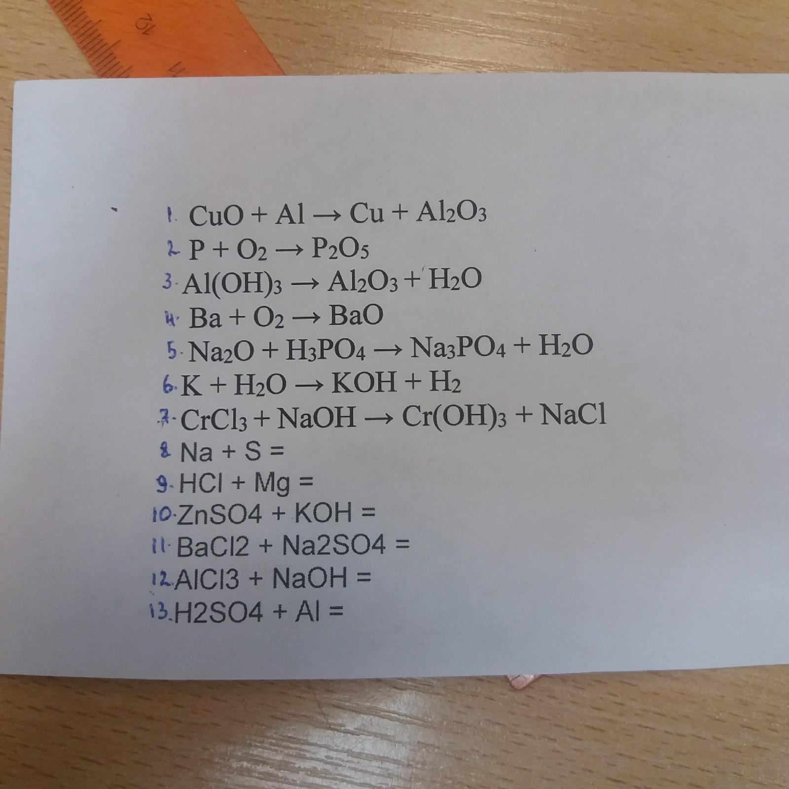 с 1 по 7 расставить коэффиценты, с 8 по 13 название сложных веществ. заранее спасибо.