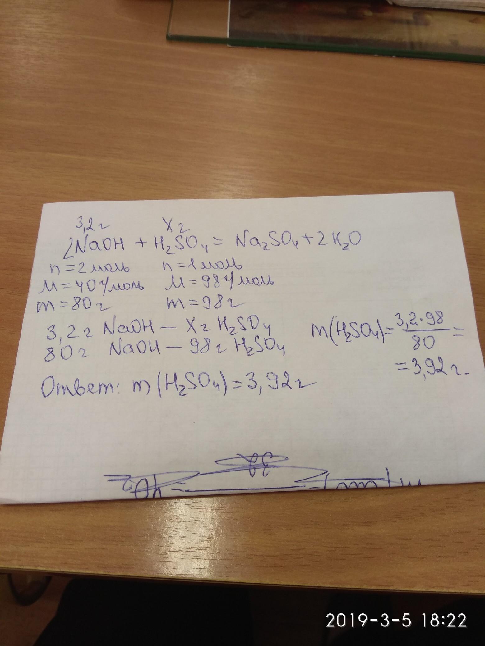 Вычисли, какая массa серной кислоты может прореагировать с 3,2 г гидроксида натрия.