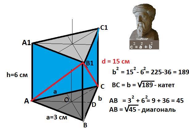 Пункт В - вычисляем диагональ грани АВВ1А1.