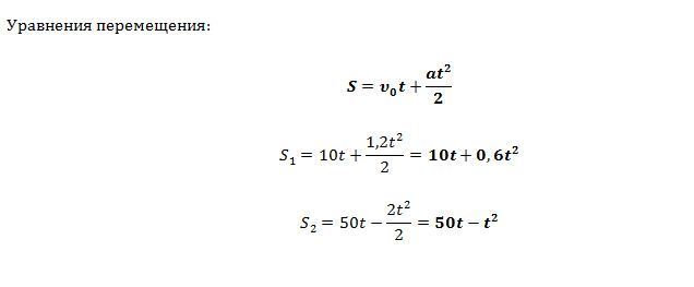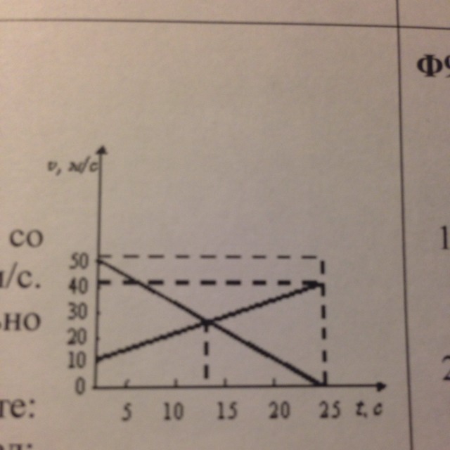 На рисунке даны графики скоростей двух тел. Определите: A) начально и конечную скорости каждого из тел. B) с каким ускорением двигались тела C) напишите уравнения скорости и перемещения для каждого тела.