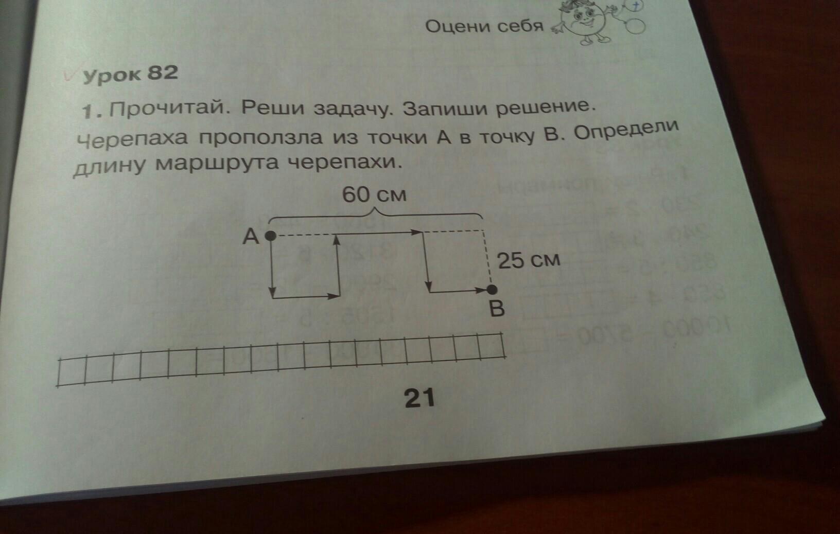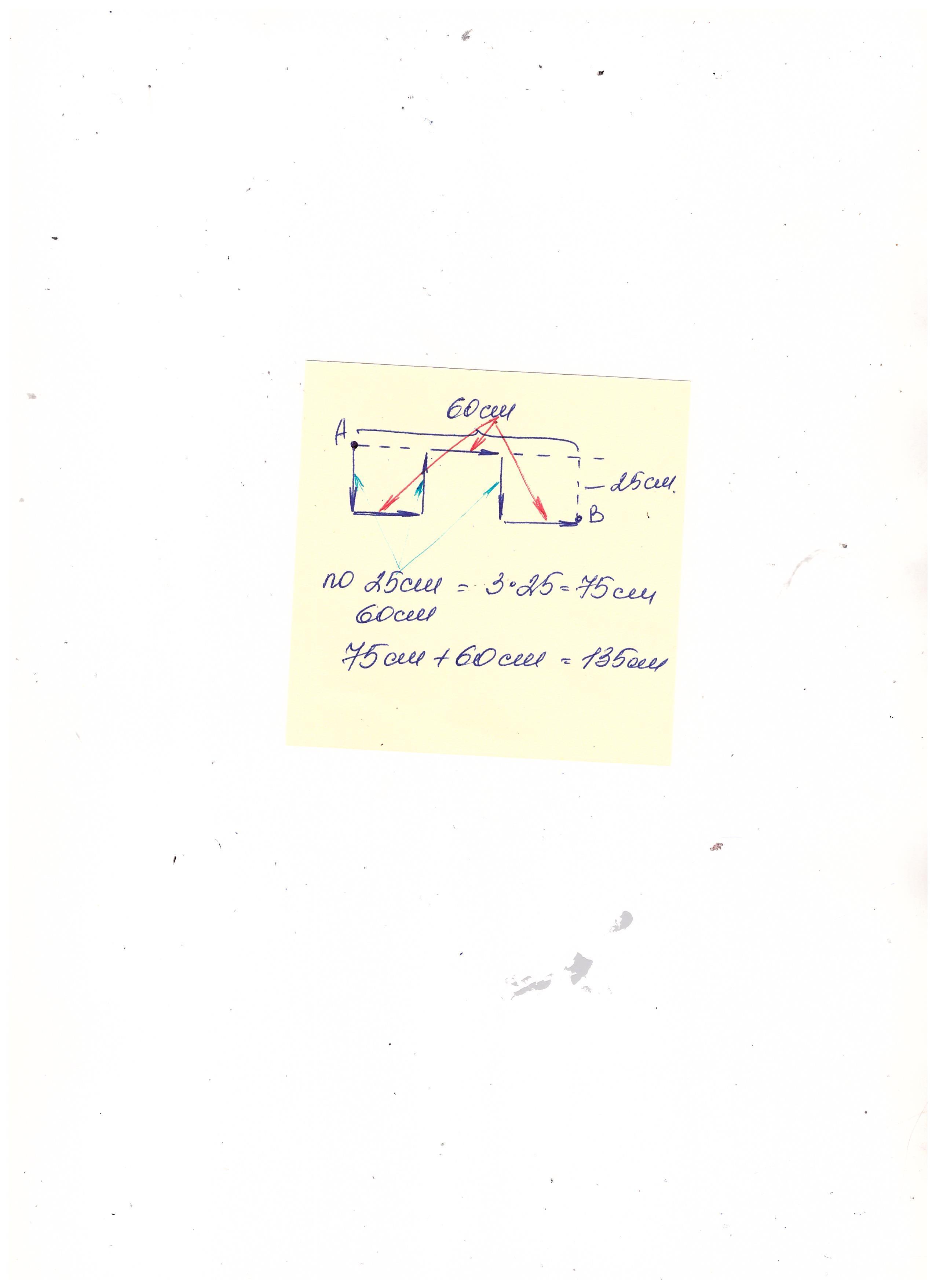Наверное считаются отрезки....кот проползла вниз и вверх черепаха и + расстояние по прямой..тогда получиться 25 см вниз+25 см вверх+25см вниз и +60см =135см