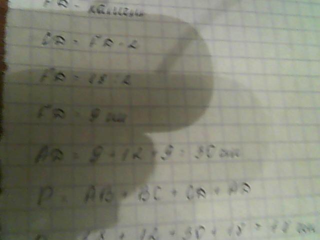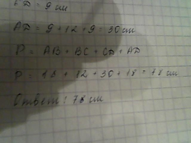 в равнобедренной трапеции АВСД меньшее основание ВС равно 12см ,боковая сторона СД 18 см .найти Р.