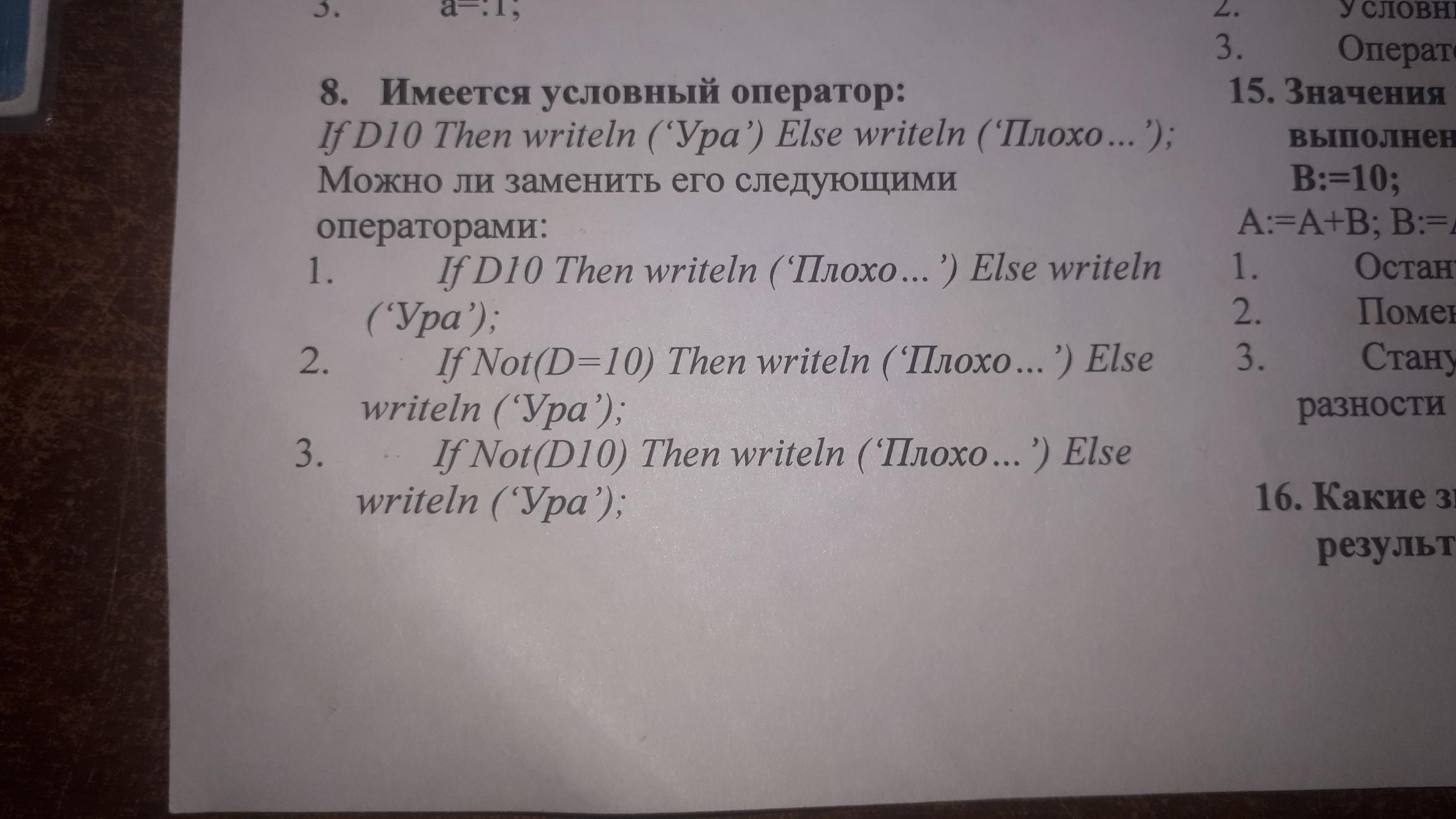 3. if not (D10) Then writeln ('Плохо...') Else writeln ('Ура');