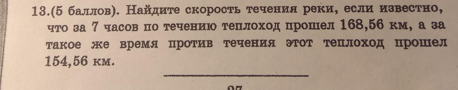 168,56 : 7 = 24,08 км/ч (скорость теплохода по течению)