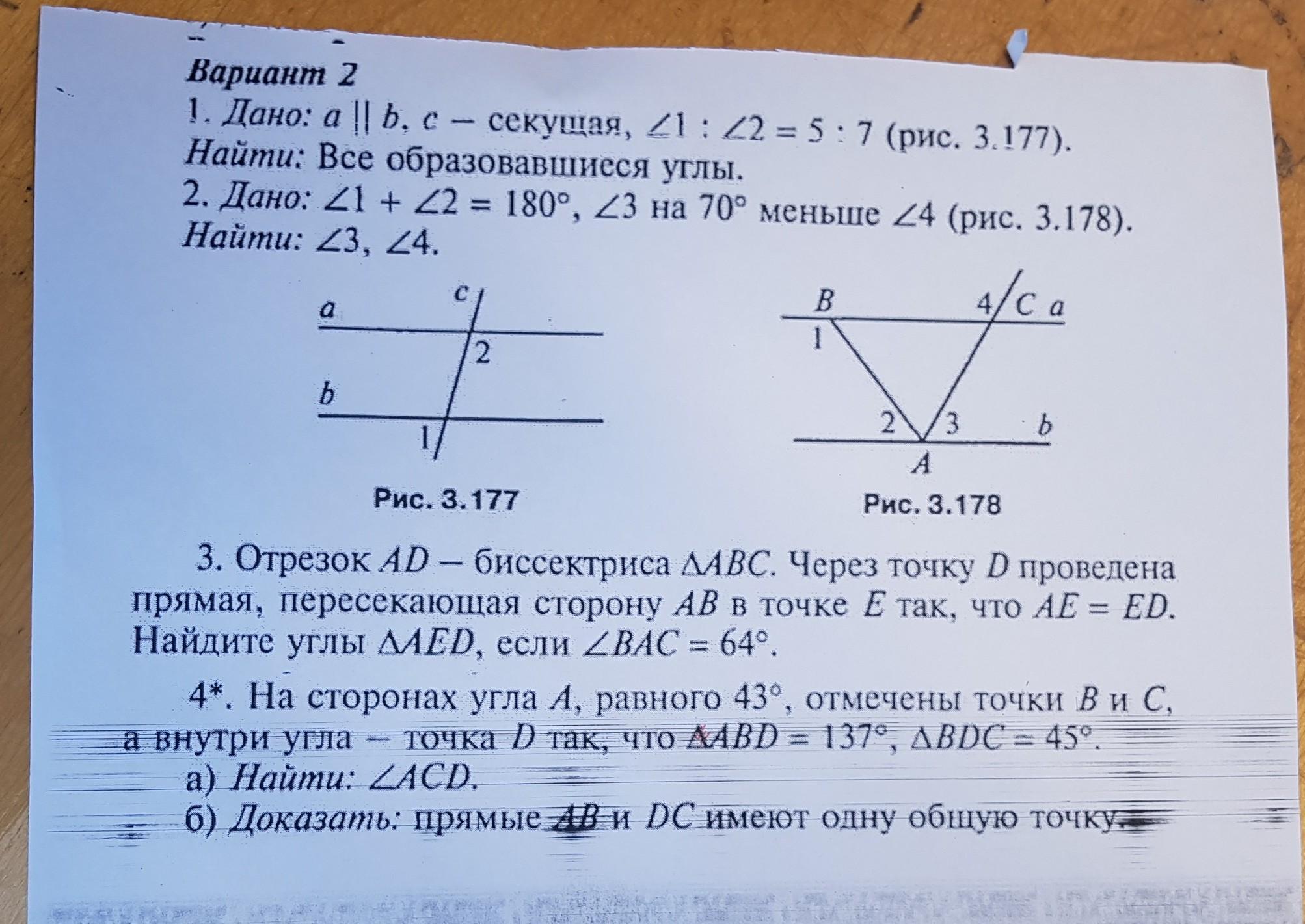 так как ∠ 1=∠допустим смежный с∠ 2∠ 3, то 1=3 , а сумма ∠ 2+∠3 = 180°